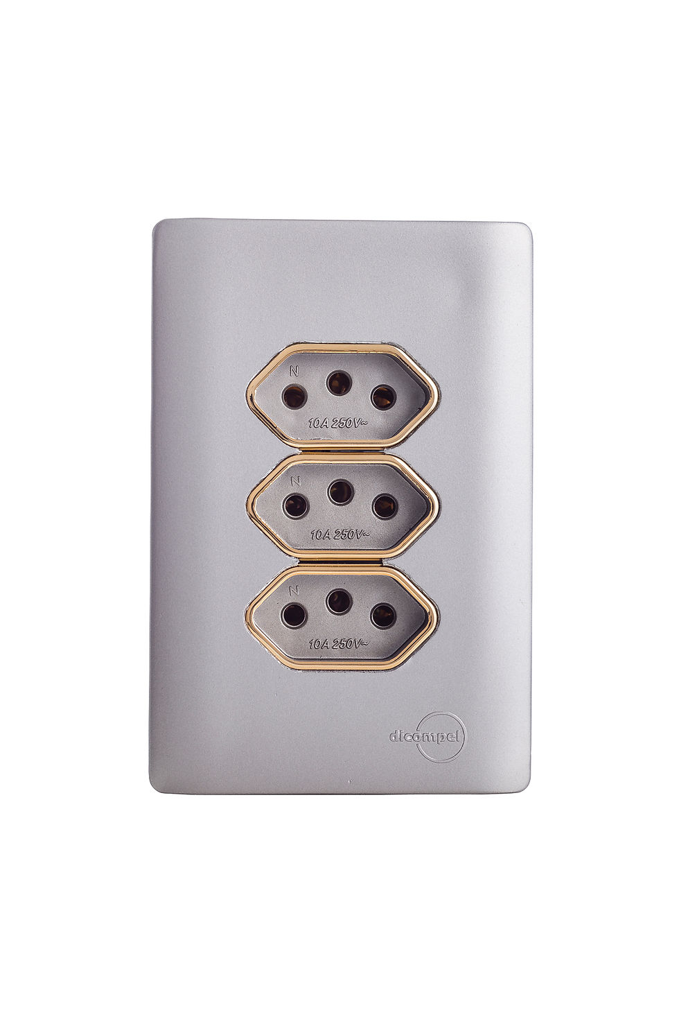 Tomada Tripla 10A Novara Aço Gold